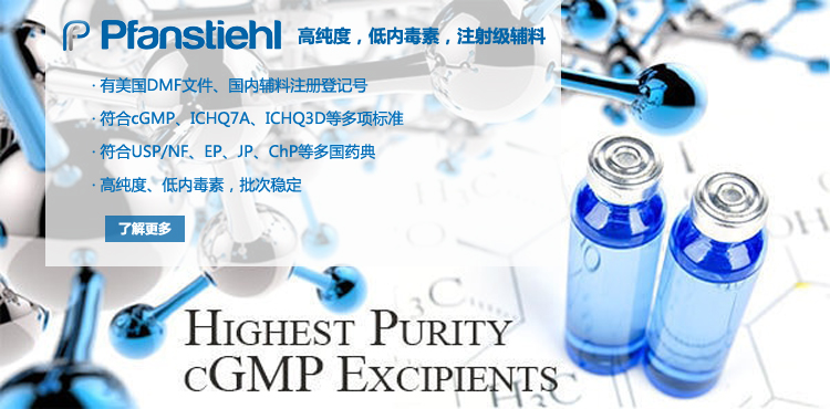 “熱烈祝賀Pfanstiehl的注射級甘氨酸Glycine(G-140)喜獲CDE登記號F20250000403, 這是Pfanstiehl產品獲得的第18個CDE登記號!”甘氨酸在醫藥輔料制劑中應用廣泛,, 可作為緩沖劑,增溶劑,穩定劑等,具有諸多優勢。Pfanstiehl秉承一貫高品質理念,為滿足全球生物制藥行業對于高品質甘氨酸的需求,隆重推出的注射級甘氨酸Glycine (G-140), 具有超高純度,超低內毒素,超低金屬殘留的特點,單獨檢測29種金屬離子,并且新增DNA,RNA,DNA酶,RNA酶和脂肪酶,亞硝酸鹽等多項質量指標的檢測,符合多國藥典規定(USP, EP, BP, JPE, ChP),可用于生物治療性藥物和疫苗的生產。產品信息:· 產品名稱:Glycine, High Purity, Low Endotoxin, Low Metals, USP, EP, BP, JPE, ChP (G-140)· 中文名稱:甘氨酸· 分子式:C2H5NO2· 分子量:75.07 g / mol· CAS號:56-40-6· 產品貨號:G-140產品特點: · 超高純度,超低內毒素,超低微生物含量,超低金屬雜質殘留· 質量指標新增DNA,RNA,DNA酶,RNA酶,脂肪酶和亞硝酸鹽檢測· 符合多國藥典:USP, EP, BP, JPE, ChP· 符合ICH Q3D標準· 符合GMP標準· 已獲DMF和CDE登記號 產品應用:· 緩沖劑· 穩定劑· 增溶劑如果您對Pfanstiehl注射級別Glycine G-140感興趣,歡迎聯系Pfanstiehl 中國區代理商北京西美杰科技有限公司獲得如下詳細的產品概況說明文件和測試樣品。Pfanstiehl Inc.最新產品系列如下,歡迎聯系北京西美杰科技有限公司獲取100g裝免費樣品。北京西美杰科技有限公司為Pfanstiehl中國代理,為客戶提供完善的技術支持與售后服務。歡迎撥打西美杰客服電話400-050-4006或者登陸網站www_xmjsci_com.13731830232.com了解更多信息。 更多>